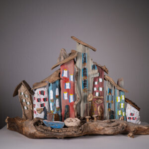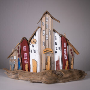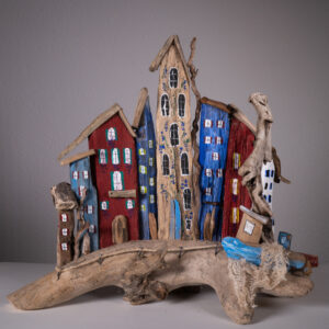Schwemmholz finden und daraus Neues gestalten- eben ein zweites Leben geben. Formen zu sehen, einzutauchen in die phänomenalen Naturwunder. Dieses Erkennen eines «gebannten» Wesens vielleicht in einer Art Gesichtchens oder teil eines Fabeltieres usw. So wie dieses Stück Holz einen Weg gemacht hat bis es mich fand, selber den Weg zu finden, ihm eine neue Gestalt zu geben. Ein einzigartiges Erlebnis!